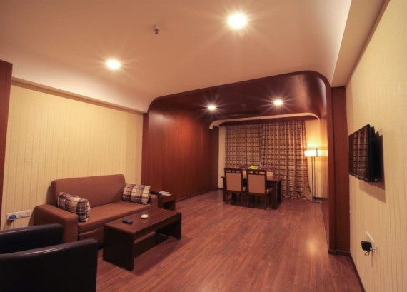 The Suites are chicly prearranged with unique features such as a detach sitting and bedroom area. With supplementary comfort, legroom and amenities, these Suites are the ideal choice Flat Screen TV with Detach Reading, Chitchat & Dine Vicinity in Living Room.